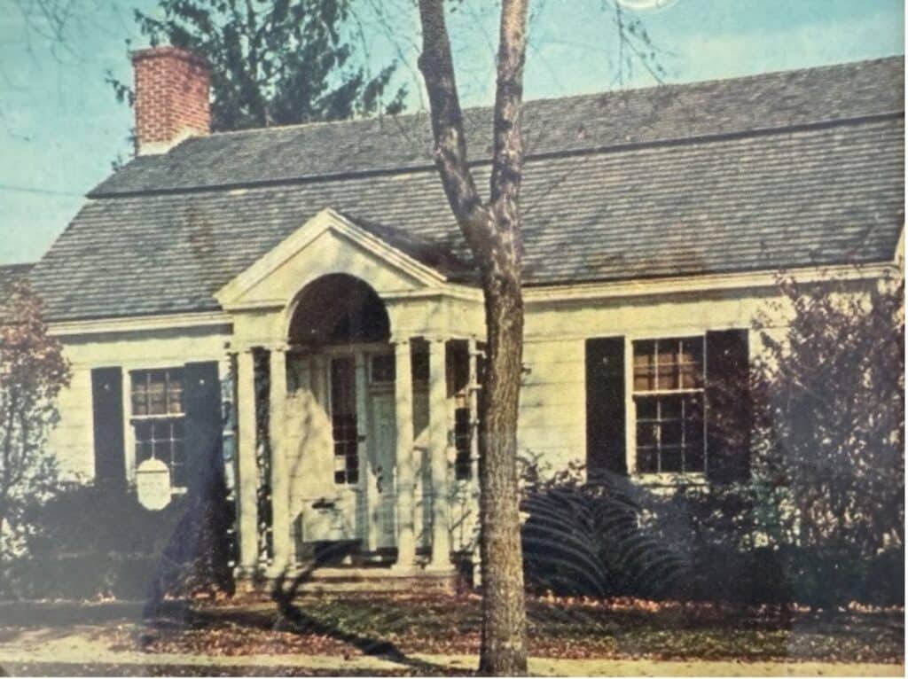 shingles with dark green shutters, and only much later (when it was shingled in the 1980s) did it become