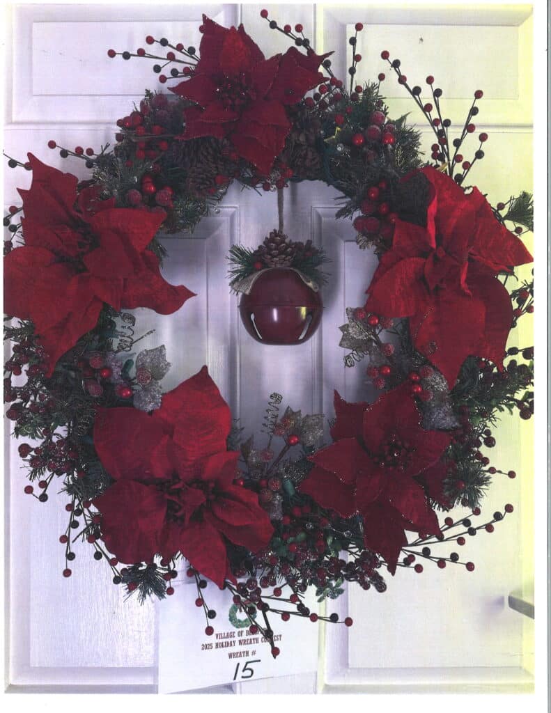 Wreaths can be picked up at Village Hall between Wednesday, November 5 and Friday, November 14 between the hours of 8:00 am-4:00 pm – Please